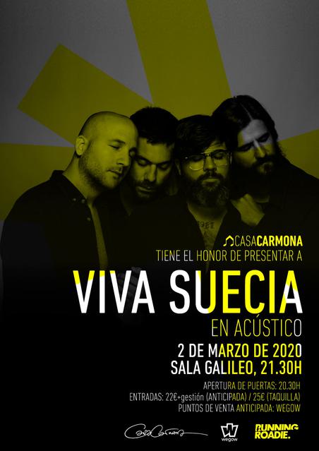 Este año, Viva Suecia darán un concierto acústico en la Sala Galileo, pero además se podrá disfrutar de un nuevo formato. Y es que, los murcianos serán los protagonistas de una conversación con Ángel Carmona (periodista en Hoy Empieza Todo de Radio 3). Será una entrevista diferente, algo cercano. Además, como sorpresa final, recibirán sobre el escenario a alguien con el que tendrán que improvisar una canción en ese mismo momento.